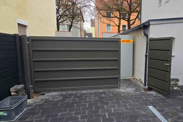 Das Ergebnis ist eine langlebige und pflegeleichte Toranlage, die sich unauffällig in die Umgebung einfügt und gleichzeitig eine saubere, hochwertige Ausführung zeigt.