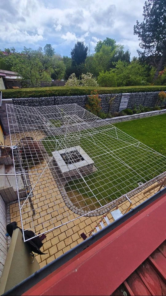 Für einen Kunden im Raum Haunstetten haben wir ein besonderes Highlight realisiert: Ein maßgeschneidertes Edelstahl-Rankgitter mit einer Gesamtfläche von rund 15 m². Die Konstruktion basiert auf einem zentralen Edelstahl-Stamm, an dem die Pflanzen emporwachsen können. Rundstäbe bilden die stabile Struktur, die nach oben in eine großzügige Fläche übergeht. Im Zusammenspiel mit den umliegenden Pflanzen entsteht ein elegantes, zugleich funktionales Gestaltungselement für den Garten. Fachgerecht geplant, gefertigt und montiert – ein echtes Unikat mit Charakter, das zeigt, wie stilvoll Edelstahl im Außenbereich eingesetzt werden kann.